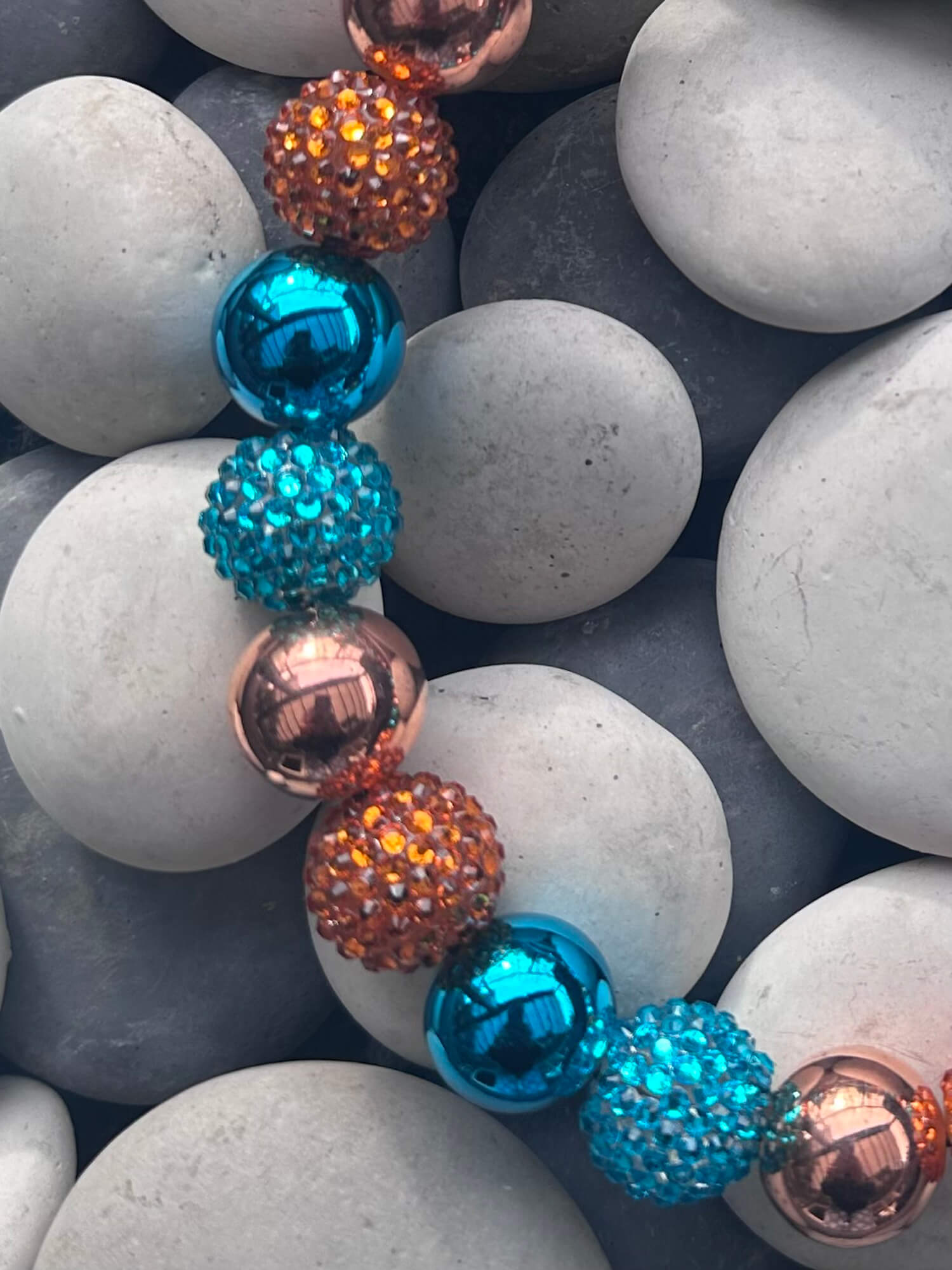 Your dog will be able to see her reflection in the super high shine copper and teal beads.