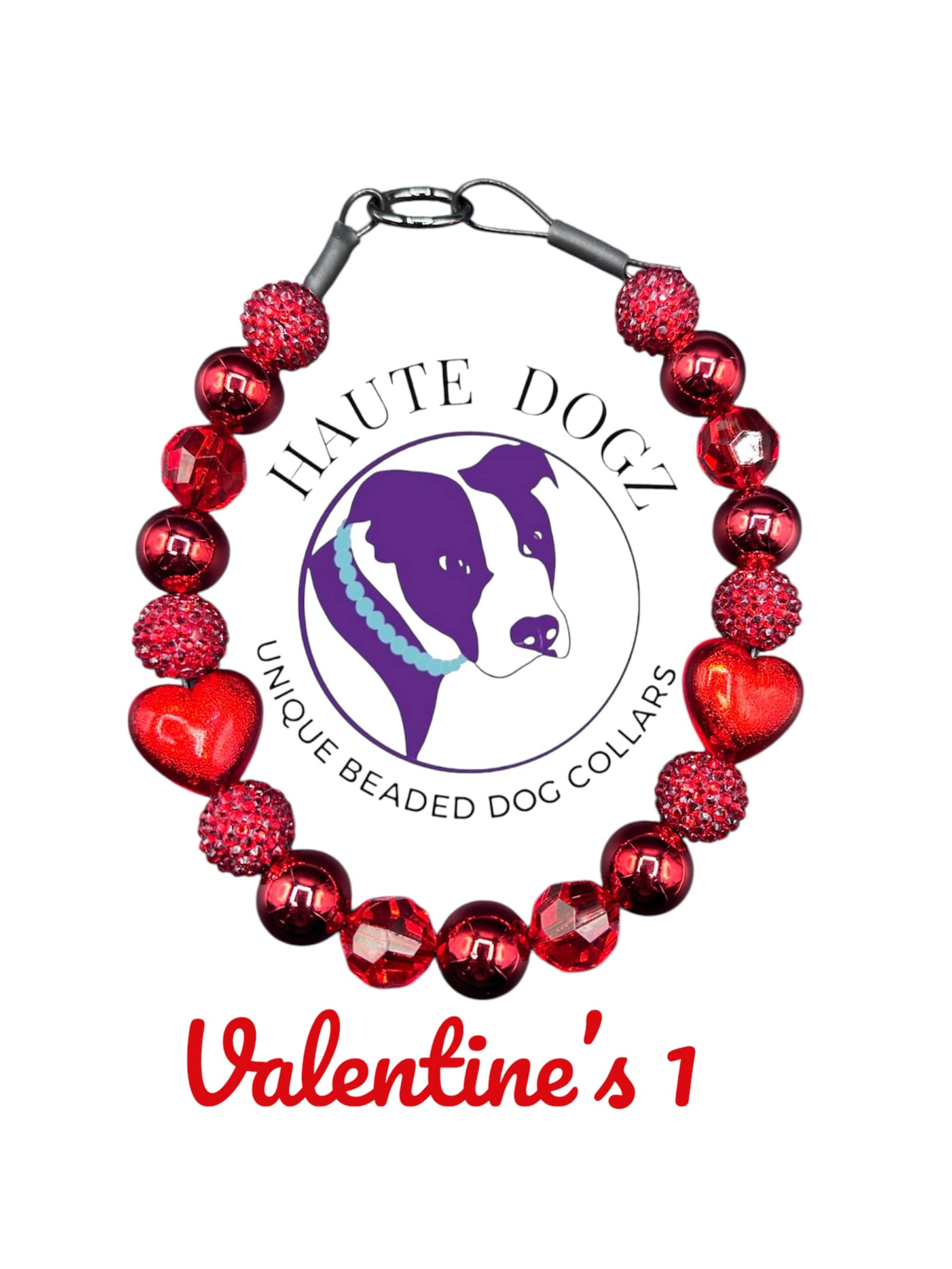 Valentine’s Day 1 is solid red gorgeous acrylic beads. This collar will look amazing on any dog, and who doesn’t love an all red blingy collar?