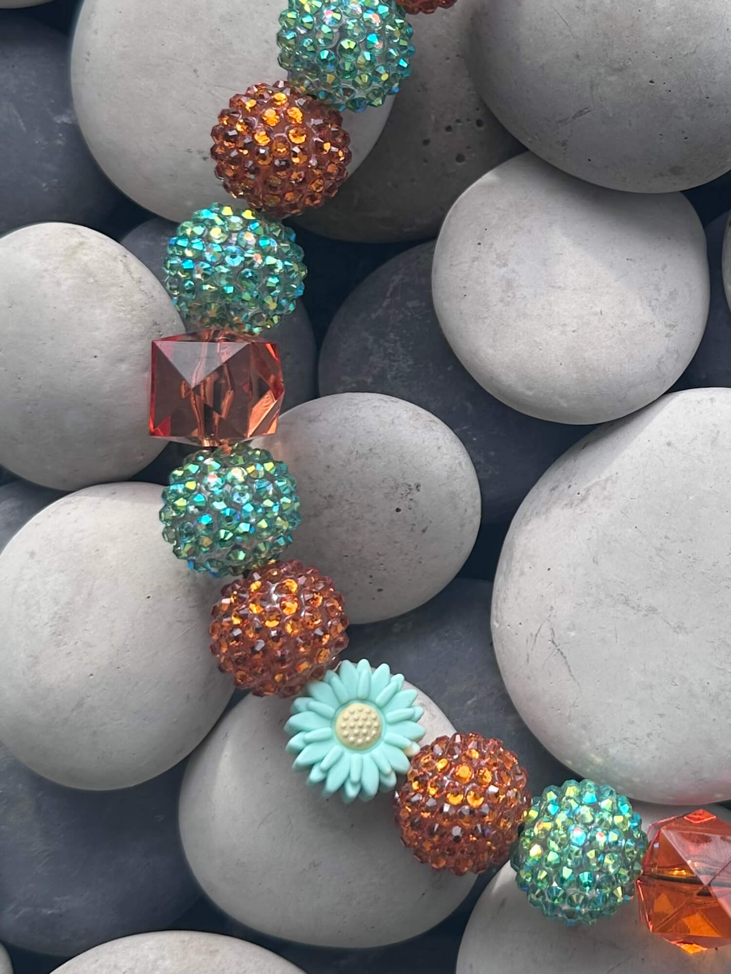 The orange and teal rhinestone beads are out of this world!